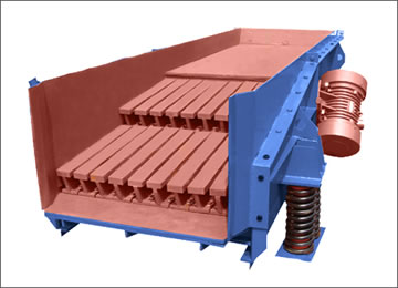 該機采用雙偏心軸激振器,保證設備能承受大塊物料下落的沖擊,給料能力大,在生產流程中可以把塊狀、顆粒狀物料從料倉中均勻、定時、連續的給到受料裝置中去。GZT/ZSW系列振動給料機可分為鋼板結構和篦條結構,鋼板結構的給料機多用于砂石生產線,將物料全部均勻地送入破碎設備中;而篦條結構的給料機,可對物料進行粗篩分,使系統在配置上更經濟合理。