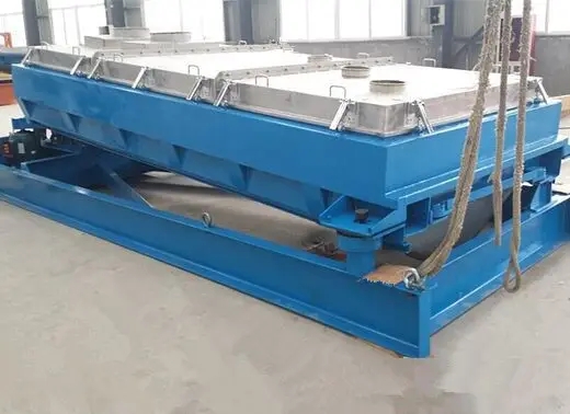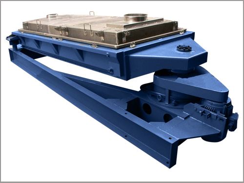 傾角為4-9度的篩箱由驅動箱傳動,其運動軌跡在進料端為水平圓運動,在長度方向上逐漸變成橢圓運動,*后在出料端變成近似往復直線運動。