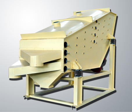 當(dāng)篩機(jī)起動(dòng)后,呈對(duì)稱布置的兩臺(tái)相同型號(hào)和規(guī)格的振動(dòng)電機(jī)或激振器作同步反向運(yùn)轉(zhuǎn),其產(chǎn)生的激振力通過(guò)傳振體—電機(jī)或激振器底座傳遞到整個(gè)振動(dòng)體—篩箱上,使篩箱帶動(dòng)篩面作周期性振動(dòng),從而使篩面上的物料隨篩箱一同作定向跳躍式運(yùn)動(dòng),其間,小于篩面孔徑的物料通過(guò)篩孔落到下層,成為篩下物,大于篩面孔徑的物料經(jīng)連續(xù)跳躍運(yùn)動(dòng)后從排料口排出,完成篩分作業(yè)。