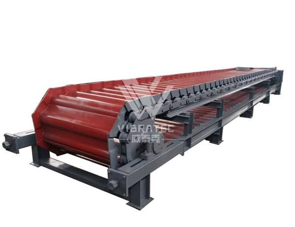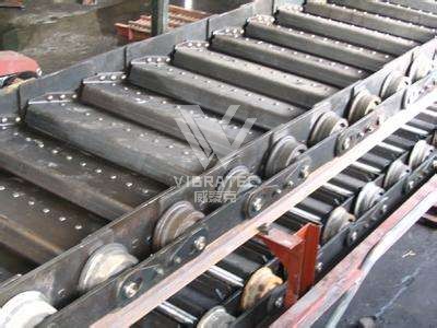 適應范圍廣:除了黏度特別大的物料以外,一般固態物料或成件物品均可輸送。適宜輸送灼熱的、粒度較大的、磨琢性強的、較重的鑄鍛件等大塊物料或成件物品,可水平或傾斜輸送各種散狀物料和成件物品,也可用于流水生產線中運送成件物品。并且還可以輸送600℃左右的高溫物料。廣泛應用于化工、機械、冶金、煤炭、礦山、電力、鑄造、汽車制造、水泥、垃圾處理等行業。